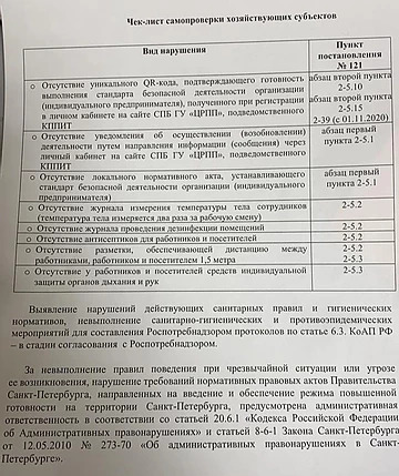 Малый бизнес сам составил памятку для предпринимателей, которым предстоит пройти проверку работы в условиях второй волны эпидемии коронавируса. Памятка пригодится всем предприятиям малого и среднего бизнеса Петербурга. Данные памятки основаны на реальных примерах проверок и правилах администрации Петербурга и РПН.