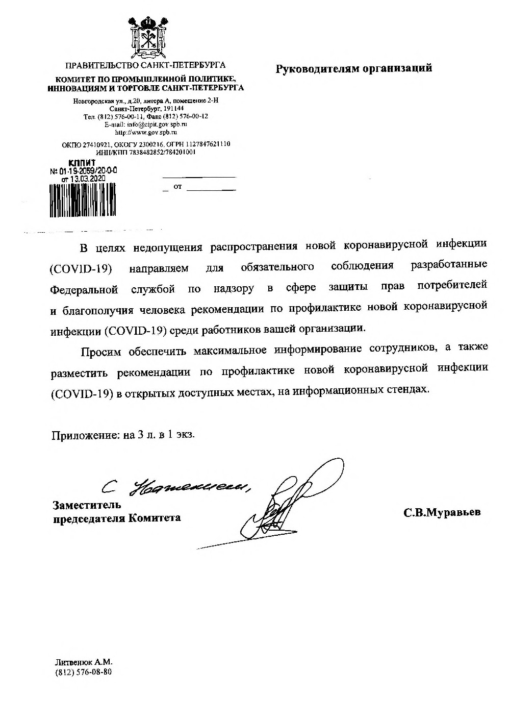 Комитет по промышленной политике, инновациям и торговле Санкт-Петербурга дал предписания по организации работы в условиях угрозы распространения коронавируса.