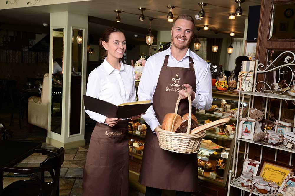 Предыдущие коллекции профессиональной одежды для сегмента сферы услуг выдержаны в классическом стиле. Белые и цветные однотонные рубашки и черные брюки, шикарно сочетались с фартуками расцветок кофе и бордо, что позволило бренду моментально завоевать расположение многих сетевых отелей и ресторанов.