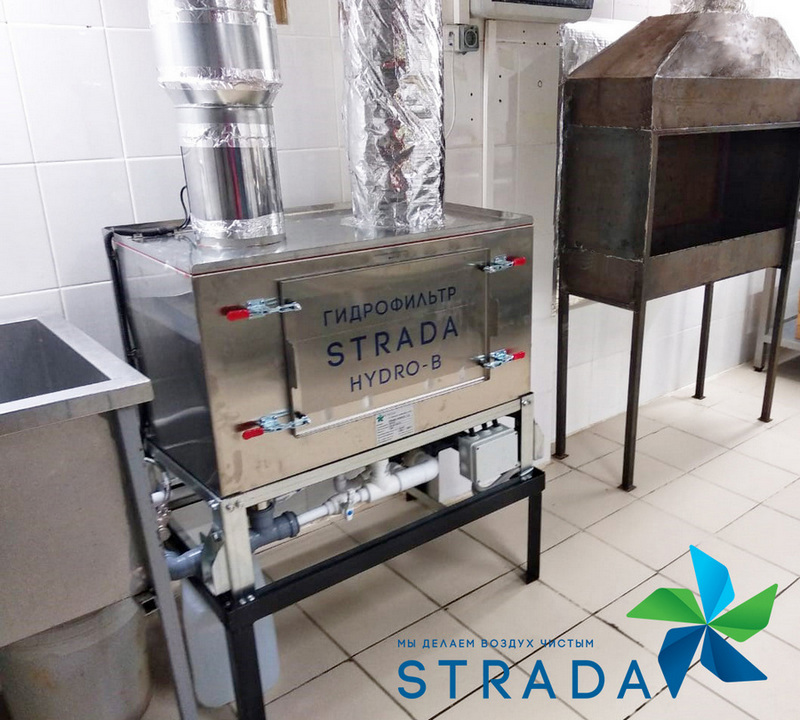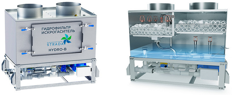На картинках выше мы видим гидрофильтр и искрогаситель марки STRADA российского производства. Каждый из них способен обеспечить пожарную безопасность в системах вентиляции с открытым огнем. Но разница между ними кроется в результате. Гидрофильтр для вентиляции – это полноценное техническое решение для ресторана, кафе и других предприятий общепита, где еда готовится на открытом огне. А искрогаситель для мангала – это бюджетный вариант гидрофильтра с ограниченными характеристиками и меньшим функционалом. Часто многие отдельные производители и продавцы вентиляционного оборудования выдают стандартный искрогаситель за полноценный гидрофильтр для очистки воздуха.