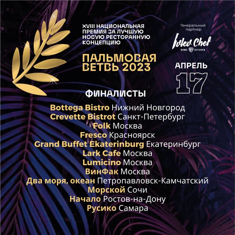 25 апреля 2022 состоятся фестиваль и премия ресторанных концепций «Пальмовая ветвь».