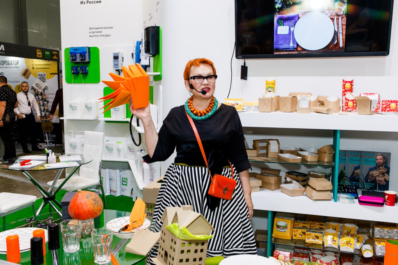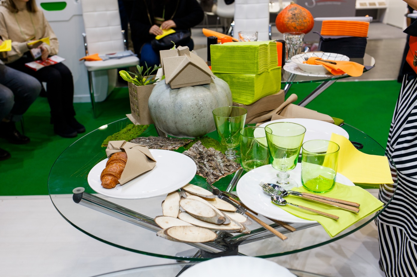 Помимо бумажно-гигиенической продукции мы продемонстрировали гостям интересное решение в сфере декора – премиальные салфетки для ресторанов Tork LinStyle. Мы гордимся не только их широкой цветовой палитрой из 17 оттенков, но и уникальным способом производства, который делает их максимально похожими на текстильные салфетки. Во время выставки известный дизайнер и декоратор Елена Теплицкая провела мастер-класс с использованием салфеток LinStyle, в котором раскрыла все секреты гармоничной сервировки стола. Мы убеждены, что эта новинка обеспечит посетителям ресторанов не только должный комфорт, но и эстетическое удовольствие от подачи блюда.