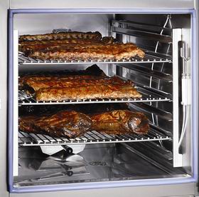 Размерный ряд у Alto-Shaam не имеет себе равных: газовые и электрические, узкие и широкие, бойлерные и инжекторные, всего 38 (!) моделей. В пароконвектоматы любого размера как опция может быть поставлен дымогенератор для копчения. Это единственный в мире пароконвектомат с реальным копчением внутри камеры на щепе.
