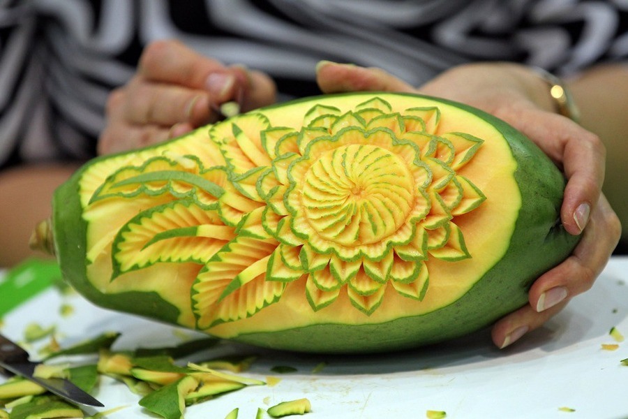 Различия между национальными школами карвинга сегодня стираются все больше. В любой столице мира круглый год доступны самые экзотические фрукты и овощи. Для резьбы привлекается весь арсенал инструментов и приспособлений.