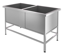 По конструктивному материалу моечные ванны подразделяются на выполненные полностью из нержавеющей стали и комбинированные. В комбинированных ваннах каркас выполнен из окрашенного или оцинкованного металла, а сама емкость - из нержавеющей стали. Данные ванны относятся к самому экономичному классу оборудования.