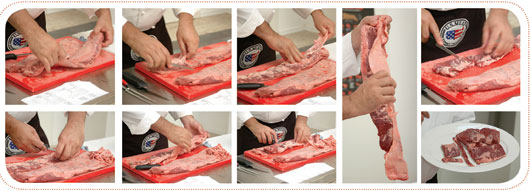 Сначала я удаляю из этого отруба внешнюю мембрану, потому что она достаточно жесткая, и если ее не убрать – таковой и останется. Внутренняя мембрана остается, но она не настолько жесткая, как внешняя. Есть несколько способов приготовления ребер.