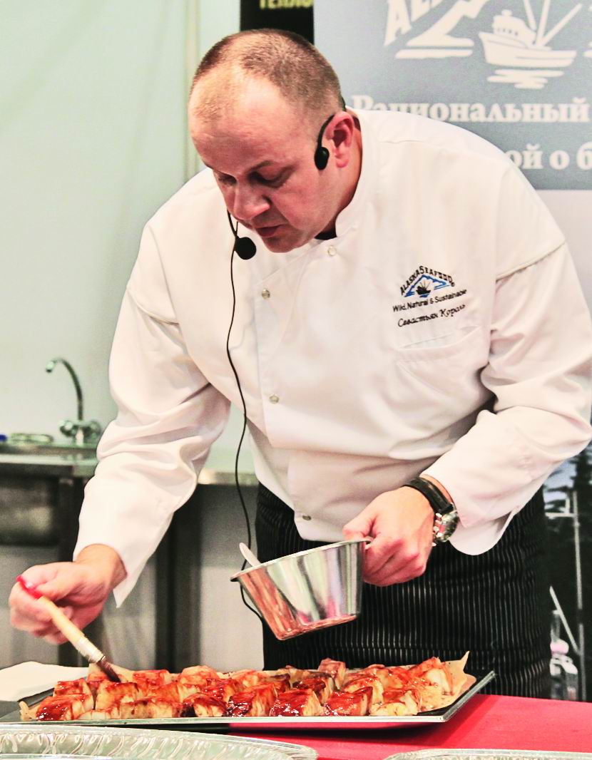 На второй день ПИРа на форуме «Мясо и рыба» представители Института маркетинга морепродуктов Аляски познакомили московских профессионалов с новой для них рыбой – королевским лососем (чавычой). Конечно, каждый шеф-повар скажет, что он знаком с этим видом рыбы, однако на выставке была представлена дикая рыба Аляски, которую в ресторанах фактически не знают. Кроме того, специалистам рынка была представлена черная треска (угольная рыба) и палтус.