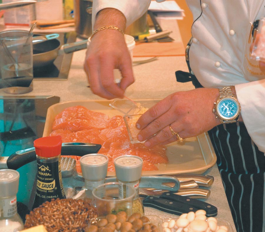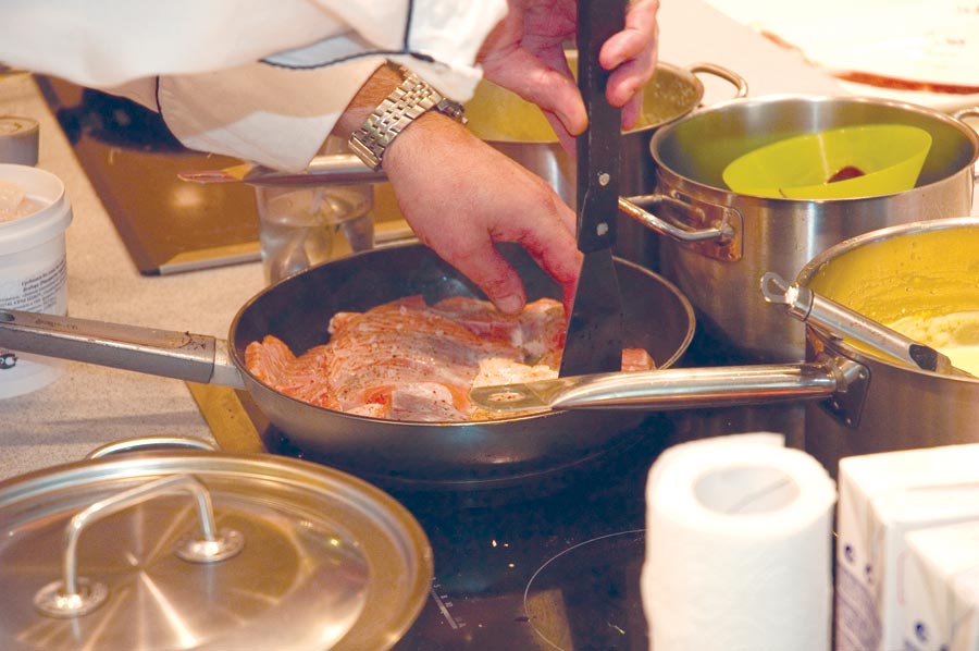 - Я очень не люблю, когда в ресторанах зажаривают семгу до состояния well done – тогда она становится сухой, – говорит Томас. – Чтобы этого не происходило, нужно оставлять ее внутри немного сыроватой – тогда сохранится сок и засыхания не произойдет.