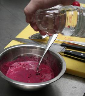 3. Заправить сок солью, уксусом (чтобы придать сладкой свекле небольшую кислинку…), резаным чесноком, горчицей, хреном (…и горчинку). Все перемешать.