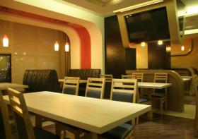 В работе над обликом заведения мы использовали в основном шпон дуба, искусственный камень, ДСП, НДФ, нержавеющую сталь и другие современные материалы. Проект этот в целом не был сложным, но стал достаточно интересным. Мы, к примеру, использовали технологию сгиба искусственного камня, что позволило придавать предметам интерьера оригинальную форму. Этот прием можно использовать при создании как столов и барных стоек, так и другой мебели. Искусственный камень состоит в основном из акриловой смолы, что позволяет при нагреве до определенной температуры гнуть листы материала, придавая конечному изделию совершенно любую и даже невероятную форму.