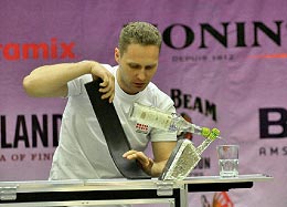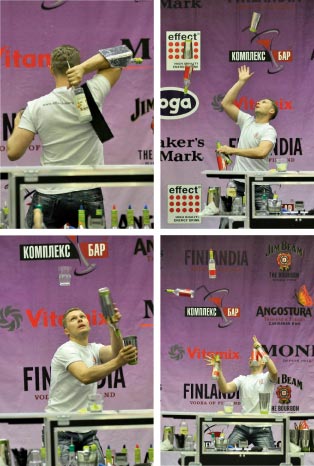 — По правилам конкурса, его участники сами не наполняют свои бутылки ингредиентами для коктейля — организаторы накануне вечером по указанию конкурсантов наполняют бутылки всем необходимым и забирают их, закрывая на складе. На следующий день за 15 минут до выступления каждому участнику отдается его ящик с тем, что он заготовил вчера. Это делается для того, чтобы обезопасить конкурс от какого-то возможного обмана.