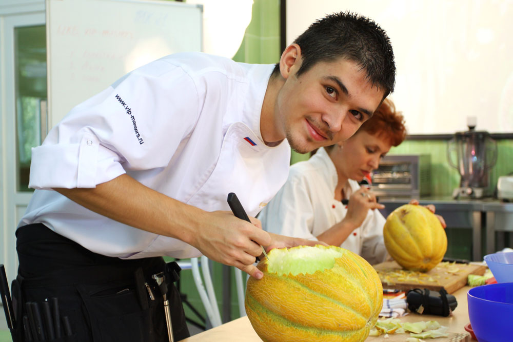 — Наверное, прежде всего нужно научиться учиться. В мире есть много способов работы с фруктами, много идей подач, но в России это направление только начинает развиваться. У нас еще нет культуры потребления пищи. Люди привыкли просто брать фрукты руками, и повар должен знать, как их вырезать так, чтобы они оставались съедобными, эстетично выглядели и при этом их можно было бы удобно взять.