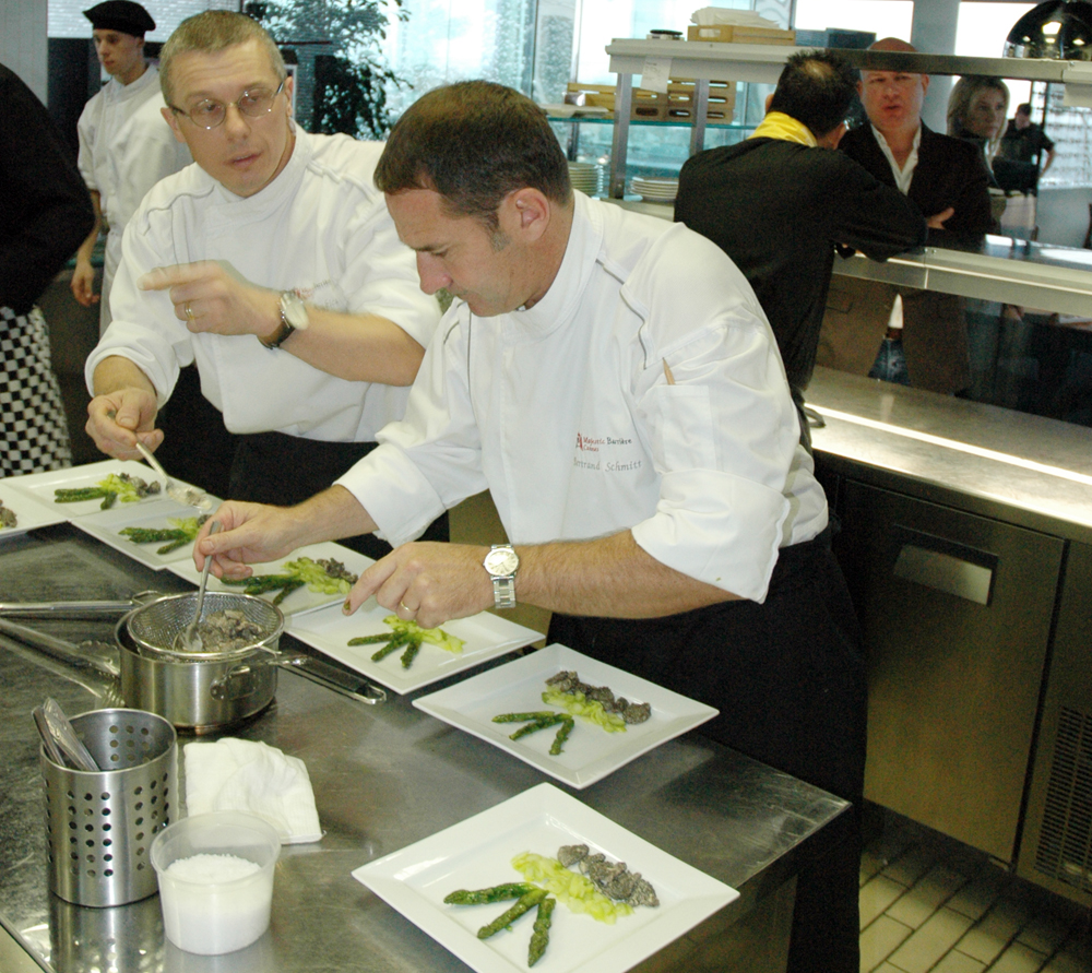 Санкт-Петербург посетил с гастролями известный французский шеф-повар Бертран Шмидт (Bertrand Schmitt). Продлились они всего несколько дней и проходили в ресторане «Мансарда», но стали запоминающимися для гурманов Северной столицы, ведь месье Шмидт является шеф-поваром настоящей резиденции для любителей и знатоков вкусной еды — отеля «Мажестик Барьер» (Majestic Barriere) в Каннах, в стенах которого в настоящее время находятся два известнейших ресторана: каннская версия парижского ресторана «Фукетс» («Фуке») (FOUQUET’S CANNES) и «Ля Пти Мезон де Николь» (La Petite Maison de Nicole), что в переводе с французского означает «Домик Николь».