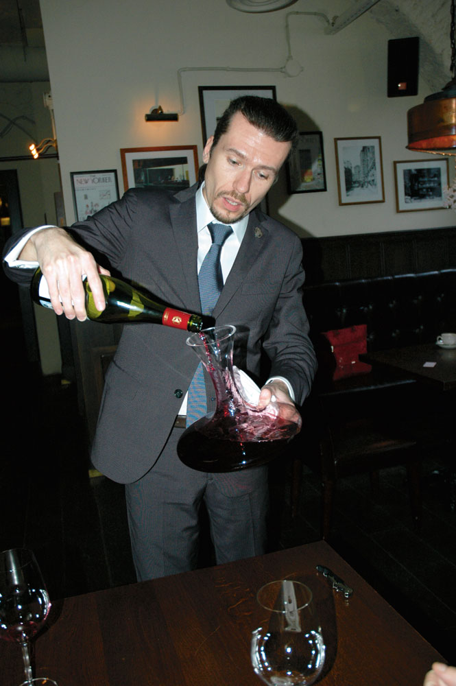 Работа с бутылкой и декантером происходит перед глазами гостя — либо непосредственно на его столике, либо на подстановочном столике рядом.