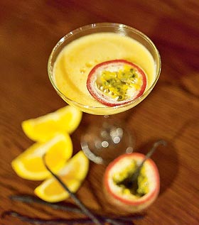— А поскольку я все же профессионал, то подумал, что могу сделать еще интереснее, приготовив еще и съедобные украшения, — улыбается Александр. — Для этого смешал половинку маракуйи с зернами стручка ванили (одного из основных ингредиентов Гальяно), добавил апельсиновый сок и украсил стручком ванили: украшение получилось сопровождающим блюдом.