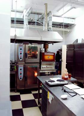 Кстати, открыто здесь фактически все: кухня от торгового зала отделяется прозрачной стеной, и гость может наблюдать за приготовлением своего ужина. Интересно, что и в кабинете шеф-повара прозрачная стенка, чтобы можно было постоянно наблюдать за процессом приготовления блюд. На второй этаж официант несет блюда по лестнице, а для спуска грязной посуды предусмотрен подъемник: таким образом избегается пересечение потоков чистой и грязной посуды.