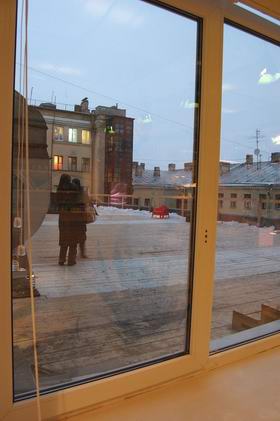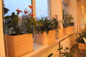 Питерский ресторан «Зеленая комната» расположился на третьем этаже дизайнерского Лофт Проекта ЭТАЖИ, объединяющего творческих людей (художников, дизайнеров, модельеров, архитекторов). В промышленных помещениях бывшего Смольнинского хлебозавода, после ремонта оформленных в концептуальном стиле, теперь проводятся интересные выставки и показы современных видов искусств. В эту творческую атмосферу как нельзя лучше вписался ресторан органической кухни. Его просторный и светлый торговый зал (рассчитанный на 30 посадочных мест) декорирован в стиле минималистского конструктивизма: облицовка из натурального дерева, живые растения в массивных кадках и даже мини-грядки, широкие панорамные окна с возможностью выхода на крышу (где, возможно, появится летняя терраса). Особый шарм интерьеру придают реальные экспонаты – бывшее оборудование для выпечки хлеба, оставшееся от хлебозавода.