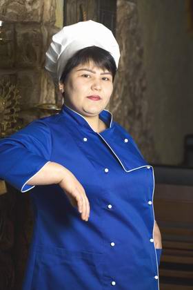 Именно такую униформу необычного василькового цвета выбрала повар ресторана «Сахара» Захида Юлдашева.