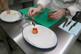 — Я целый год готовился к представлению этого блюда, это очень глубокая разработка, — объясняет Влад. — На конкурсе я готовил его 5 с половиной часов — оно технологически сложное, в нем множество тонких сочетаний вкусов, различить и оценить которые могут только очень большие профессионалы, великие мастера кухни. Это не значит, что я целый год работал — бился! — с одним и тем же конкретным блюдом, задуманным когда-то. Нет: я пробовал, экспериментировал, из одного и того же продукта делал множество разных заготовок, одни брал на заметку, от других отказывался, и таких продуктов тоже было множество. Скажем, основой блюда стал лосось. С ним я больше всего и работал: как наилучшим образом представить эту рыбу, к какому вкусу стремиться — на эти вопросы я и искал ответы. Дополнения к лососю: как можно оттенить его вкус, что взять, что отложить, о чем задуматься — и в результате таких раздумий получилось то блюдо, которое было представлено на конкурсе. Сейчас невозможно, да и не нужно, объяснять все его тонкости, но принцип приготовления и подачи будет понятен.