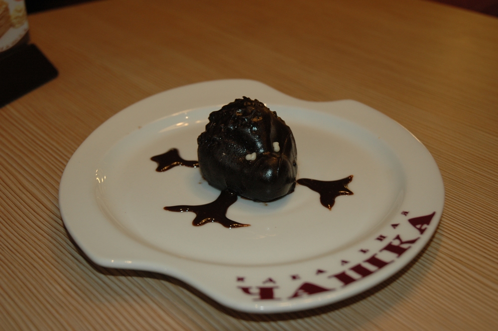 Удивительно, что в Петербурге это пирожное (и торт) мало известно, более того – его фактически никто не знает. А ведь его рецептура достаточно интересна: пекутся слоеный бисквит, ванильно-сливочный и шоколадный, а потом промазываются сметанным кремом, смешанным с грецким орехом. Сверху пирожное покрывается шоколадной глазурью.