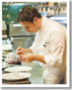 — Мы получили две звезды за очень короткий — самый короткий — срок в Италии, за 18 месяцев. Но моя цель не «собирать звезды», а совершенствовать кухню, улучшая свою работу. Впрочем, для меня это вовсе не работа, а любовь: я все делаю сердцем. На самом деле, во всем этом заложена страстная любовь к кулинарии. Она сопровождает меня повсюду: от тщательного выбора исключительных продуктов до осуществления моих фантазий на кухне. Я всегда ставлю себя на место гостя, когда разрабатываю сочетание вкусов и композиций, создавая нечто уникальное. Да, несомненно, очень важно, что люди меня признали и я получил звезды, но самое главное — это качество того продукта, который я представляю нашим гостям.