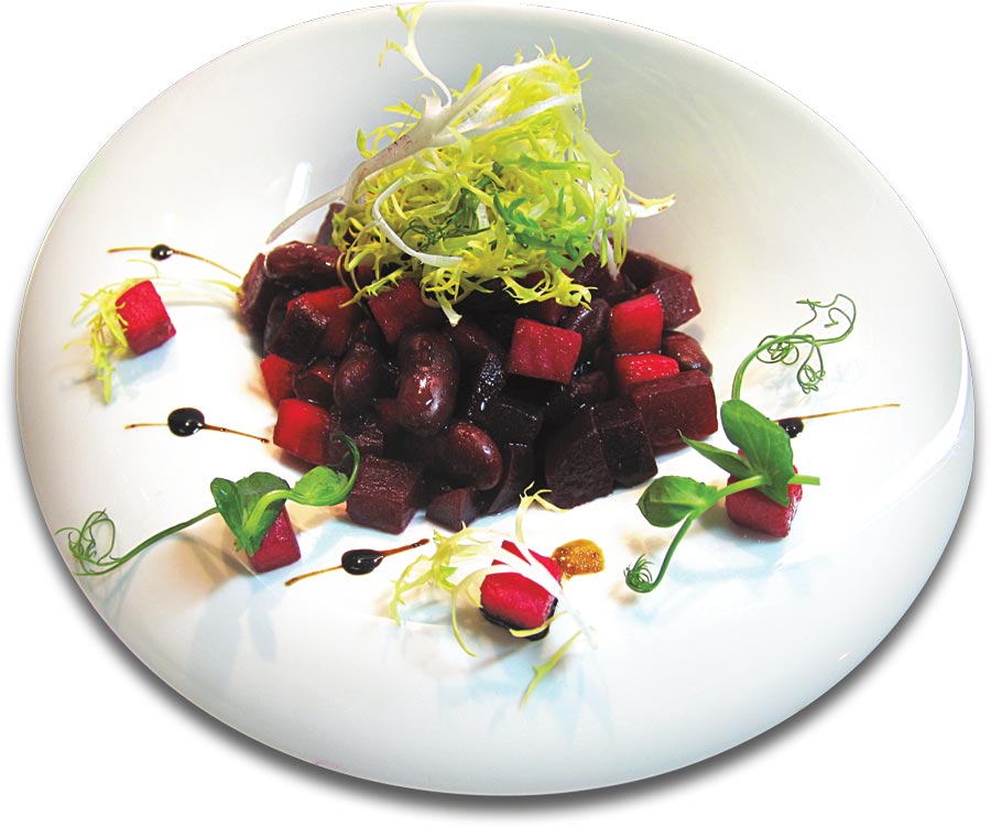Тёплую свёклу нарезать кубиком, заправить салатной заправкой, приправить специями и поставить в холодильник минимум на 30 минут.