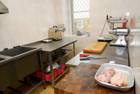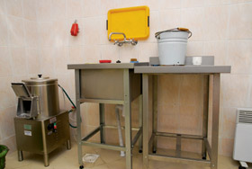 На новой кухне появились охлаждаемые столы Eksi (Италия) с дверцами, которые, позволяют удобнее организовать работу, так как все необходимое для работы поваров находится под рукой. Для хранения продуктов на кухне были поставлены холодильные шкафы Polair (Россия), рассчитанные на работу при температуре внешней среды до 40 градусов. Немецкие агрегаты Danfoss обеспечивают холодильникам достаточный запас прочности. Единственный холодильник Cryspi c универсальным режимом –6…-0оС был поставлен в мясорыбный цех. Это оборудование хорошо востребовано при оснащении заведений питания для хранения охлажденных мяса и рыбы.