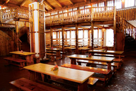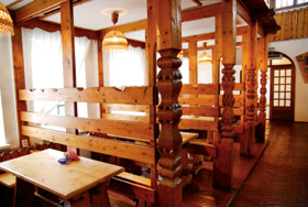 - В 1987 году было издано постановление областного правительства, которое предписывало представителям потребительской кооперации создать сеть придорожных кафе, решающих проблему питания проезжающих и туристов, - обращается к истории Михаил Заславский, председатель совета Гатчинского райпо. - Преобразования начались с создания интерьера большого гостевого зала, в котором участвовал известный архитектор и краевед Александр Семочкин. Помещение было решено в стиле русской избы с полной отделкой светлым деревом: деревянные половицы, скатная крыша, массивные скамьи и столы, настоящая русская печь, которая топится в холодный сезон. Чтобы эффективнее использовать высокое помещение, были выполнены балконы – к 100 посадочным местам в нижней части зала это добавило еще 30. Чуть позже, в 1989 году, в интерьер зала была вписана барная стойка.