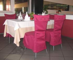 Именно такую задачу – оформить ресторан с большой площадью торгового зала, разделив его на зоны и сузив тем самым восприятие пространства, - поставили перед компанией «БелРоссДекор» руководители отеля «Ольгино». Дизайнеры разработали два вида чехлов – на стулья и кресла, причем для декорирования стульев был выбран малиново-красный оттенок, а для кресел - красный в сочетании с белым. Разные оттенки одной цветовой гаммы зрительно разделили большой зал на зоны, сохранив при этом его целостное восприятие. А руководители ресторана гостиницы «Адмиралтейская» попросили сшить чехлы не только на стулья, но и на кофейный автомат, стоящий в зале, чтобы он не выбивался из общего стиля.