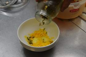 4. Смешиваем растительное масло, лимонный сок и шафранную воду.