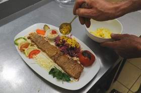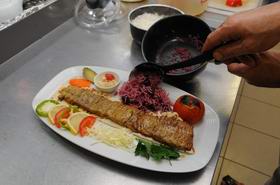 8. При подаче мясо выкладывается на лаваш. Блюдо можно украсить свежим перцем, зеленью и овощами.