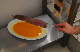 5. Немного смачиваем мясо получившимся соком. Можно использовать кисточку - небольшого количества достаточно для вкуса и запаха.