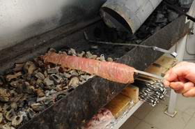 6. Мясо готовится на открытом огне три-четыре минуты.