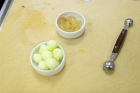 2. Очистить от кожуры зеленое яблоко. С помощью ложки-шатон сделать шарики из яблока.