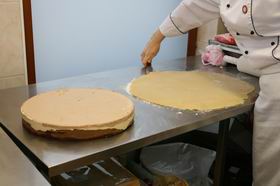 8. Торт слегка встряхнуть и поставить в морозильную камеру с температурой минус 15°С не менее чем на 4 часа.