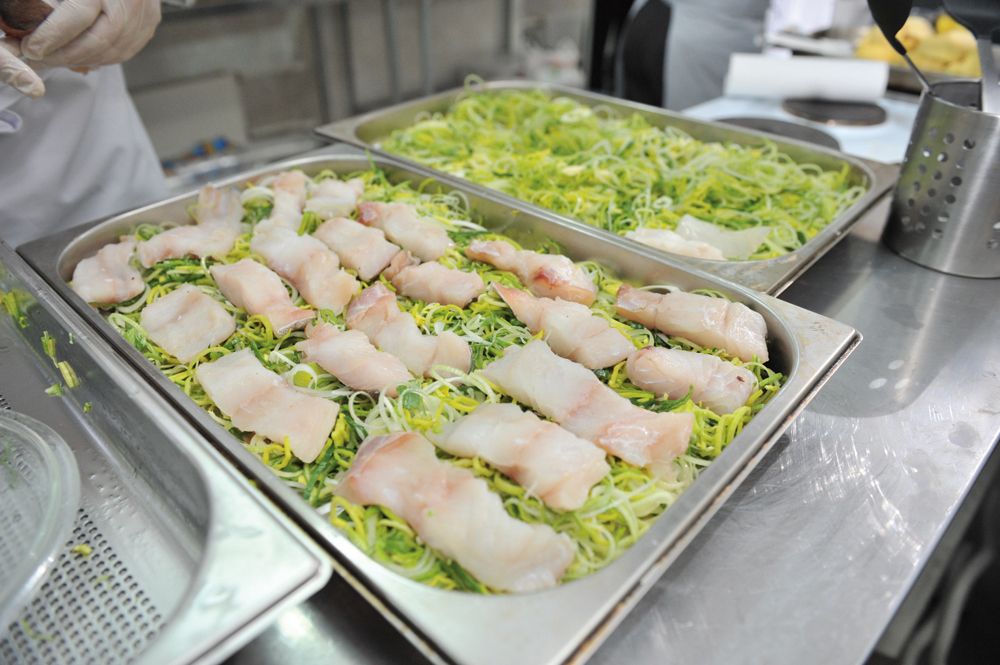 В пароконвектомате Houno Валерьян Антонов приготовил на пару треску с луком пореем. Это блюдо, приготовленное в щадящем температурном режиме за 15 минут, имело не только превосходный вкус, но и сохранило все витамины и полезные вещества, причем порей даже не изменил свой яркий зеленый цвет. При помощи ручного миксера-блендера MP-250 со сменными насадками приготовили массу для куриного суфле, потом ее запекли в уже упомянутом пароконвектомате Houno. Блендер MP-250 был задействован и для приготовления творожной массы для запеканки опять же в пароконвектомате. Было отмечено, что оборудование производства Houno и Robot Coupe сочетают как высокую технологичность и надежность, так и простоту в освоении и эксплуатации.