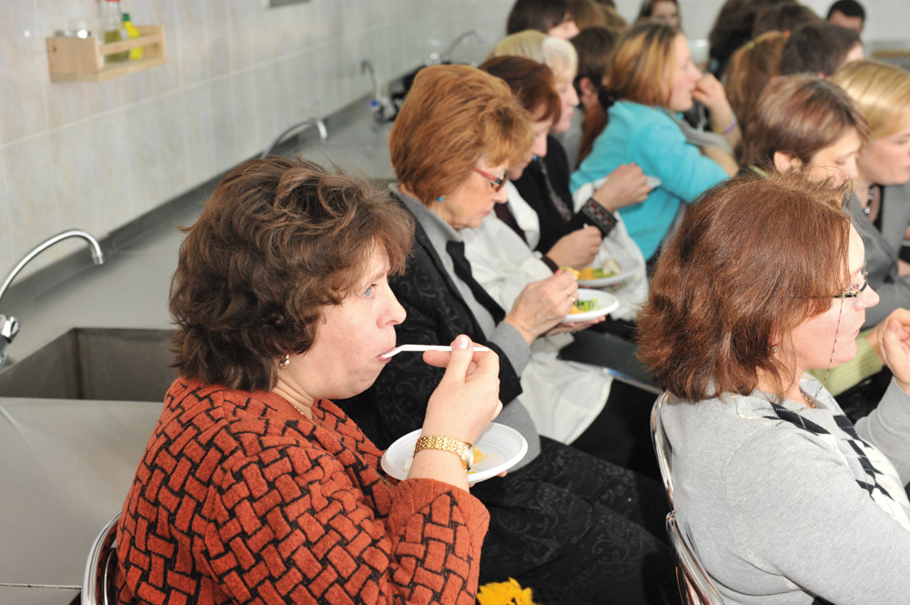 Готовясь к семинару, члены научного ученического общества провели в лицее исследование под названием «Мое любимое блюдо школьного меню». Поделились опытом и высказали свои рекомендации 120 учащихся лицея, вчерашних школьников. Оказалось, что, хотя чипсы и гамбургеры любят все подростки, большинство из них отдает предпочтение все-таки сокам, десертам, горячим блюдам, салатам, выпечке. Это показали предоставленные цифры и диаграммы. Преподаватели совместно с учащимися разработали и предложили собравшимся двухнедельное меню школьной столовой.