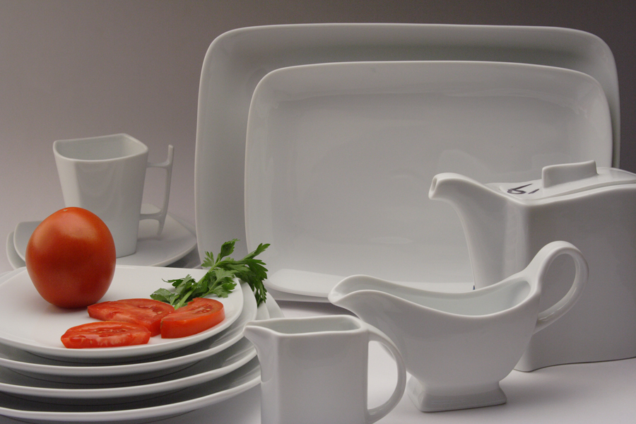 Приданию особого настроения посетителям ресторана может способствовать и оригинальная подача блюд на чугунных сковородках, небольшое шоу с поджиганием блюда. Для сервировки стола подойдет фарфоровая посуда Sam & Squito Quadro. Преимущество этой серии посуды заключается в ее качестве и необычном дизайне, который добавит «изюминку» общему интерьеру ресторана.