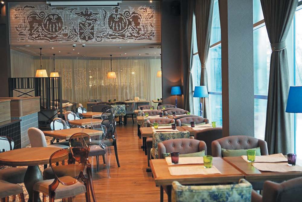 Новое заведение заработало в торговом комплексе, который появился здесь после существенного расширения коммерческих площадей на первом этаже — изначально их занимал только супермаркет «Холидей классик».