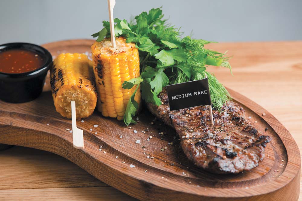— И в меню у нас, конечно, не одни стейки, хотя им уделено центральное место, — рассказывает Илья Бурнасов. — Мы ориентировались и на основную концепцию заведения, и на то, что в нём предлагается разливное пиво. Поэтому у нас есть и более калорийные, и более утончённые закуски — «старты», есть салаты, супы и бургеры. В разделе «Сырое» мы представили как мясо, так и рыбу в разных вариациях — тартары, татаки из тунца и говядины, — а также не обошли вниманием людей, которые не едят ни мяса, ни рыбы: наш стейк из цветной капусты уже стал особенно популярным. Есть даже вегетарианский бургер — с котлетой из нута и булгура.