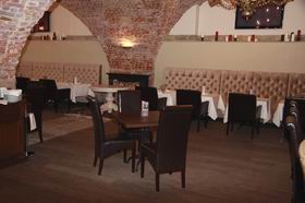 Кстати, такому формату наверняка будет соответствовать акустика ресторана: дело в том, что он представляет собой единое пространство чуть более 200 кв. метров, разделенное арочными колоннами на несколько залов – в сумме они рассчитаны на 100 посадочных мест. Помещение впечатляет! Оно выглядит огромным и в то же время уютным.