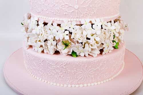 — Торт с цветами и фигурками — третьей или четвертой категории — может изготавливаться кондитером несколько рабочих дней. Сама обтяжка делается быстро — небольшой простой торт можно обтянуть часа за два. Основное время тратится на декор. Определенное количество времени займет создание фигурок — а если заказ еще и подразумевает, чтобы эти фигурки были похожи на реальных людей (что вполне может быть), то он будет исполняться еще дольше. Цветы: каждый лепесточек отдельно выкатывается, подсушивается, подкрашивается, потом собирается в букеты и мини-букеты. Поэтому торт с цветами очень трудоемок, зато его можно сделать абсолютно любым и вписать, например, в любую свадьбу, изготовив торт с точно такими же цветами, которые предполагаются для букета невесты или украшения помещения.