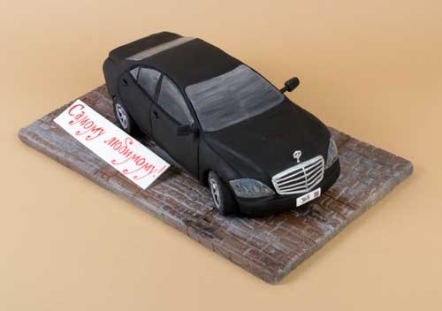 — Абсолютно. Например, в виде автомобиля. Он просто выглядит, но в изготовлении на самом деле является одним из сложнейших — потому что он очень похож в деталях на тот автомобиль, который существует в реальности. В нем много мелких деталей, которые мы изготавливаем по эскизам. Нам заказывают модель, марку и цвет, потом мы находим чертежи этого автомобиля, переводим их в нужный размер, распечатываем, вырезаем, склеиваем, если это нужно, и только потом по этим эскизам начинаем вырезать детали торта. Так же выполнялся, например, торт для музыканта-именинника Вадима: мы делали музыкальные инструменты в реальных пропорциях. Это очень сложно: мы печатали эскизы, чтобы передать четкие формы, а под подставкой еще сделали подсветку, потому что торт должны были подавать в затемненном зале. Поэтому по низу торта пущены фонарики, сзади встроен переключатель, спрятана батарейка и прочее.