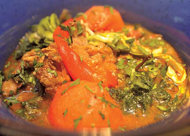 Капама — блюдо, которое долго готовится. Для него используется баранья шея, ножки и прочие отруба, которые повара обычно редко заказывают. Это мясо нужно замариновать в смеси уксуса, соли и оливкового масла, а потом долго тушить в белом вине с репчатым луком — пока не начнут отделяться кости. Когда оно будет готово на 80 процентов, добавить помидоры и тушить дальше до полной готовности.
