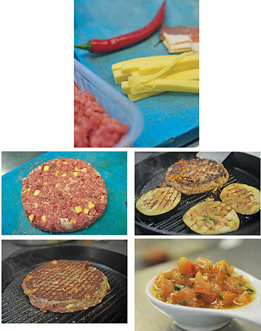 Мария разработала для плескавицы ресторанную подачу — с баклажанами и соусом пико де гайо. В Сербии же, как она рассказывает, это блюдо подается обычно более просто — с картофелем фри и кетчупом.