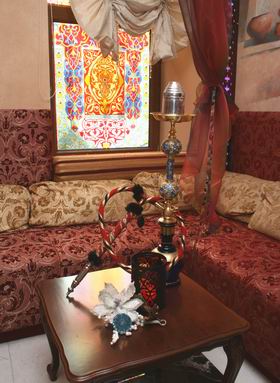 В уютной кальянной атмосфера яркого восточного базара непостижимым образом сочетается с духом восточного же философского спокойствия. Разноцветные витражи ручной работы на оконных стеклах, ручная роспись стен с сюжетами стамбульских улиц, тяжелая итальянская люстра в центре со свисающими каменьями, покачивающимися в такт медитативной музыке…