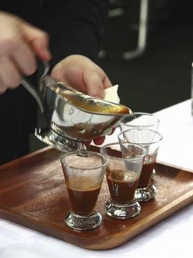 - Для своих эспрессо и каппуччино я взяла одну смесь, для авторского добавлю еще одну, - отметила во время презентации Валерия Горелик, уже 3 года варившая кофе, но впервые принимавшая участие в чемпионате России. – В сочетании с первой смесью и при добавлении сливок, сахарного сиропа и свежей ванили кофе повторит вкус молочного шоколада…