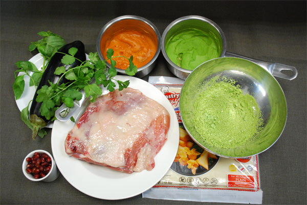 Растопленный курдючный жир, сухари панировочные, ростки гороха, кориандр, соль, перец