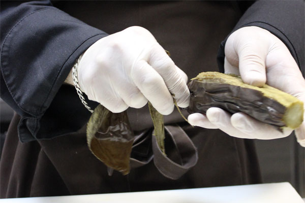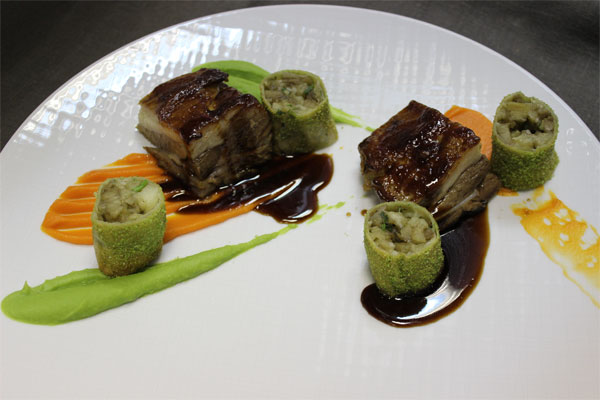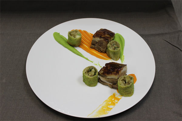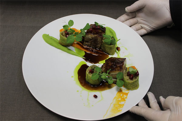 Лопатку ягненка готовить в курдючном масле при 80 градусах в течение 6 часов, остудить и нарезать на порционные куски, смазать соусом «хой син». Перед подачей, поставить в духовку при 180 градусах на 7 минут.