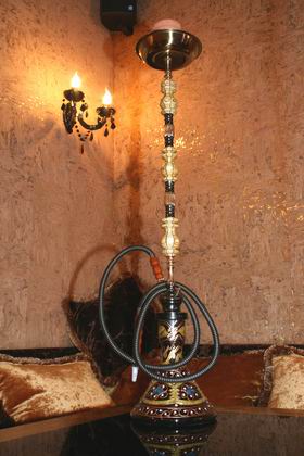 Конечно, здесь должны подавать кальян, и он есть: Даниил Алиев с гордостью показывает эксклюзивный кальян, который везли непосредственно из Марокко. Надо отметить, что это действительно редкость: как правило, все кальяны даже в дорогих ресторанах китайские.